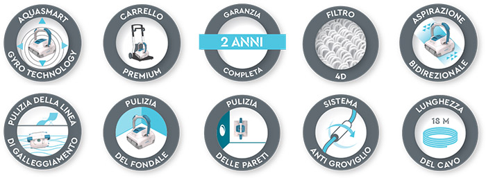 Infatti sono dotati del sistema GYRO, composto da un giroscopio e un algoritmo che esegue la scansione della vasca e rileva eventuali ostacoli per individuare il percorso migliore da seguire.