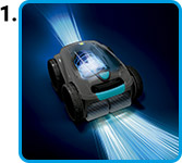 Il Robot Zodiac OV 5480 iQ VORTEX è un pulitore "fuoristrada" dotato di 4 ruote motrici che superano ogni ostacolo e aderiscono alle pareti della piscina.