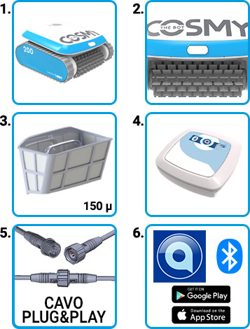 Cosmy 200 è inoltre dotato di un avanzato algoritmo AquaSmart Touch che unito al sistema di navigazione GYRO è in grado di rilevare e aggirare gli ostacoli in acqua, riducendo al minimo il rischio di attorcigliamento del cavo.