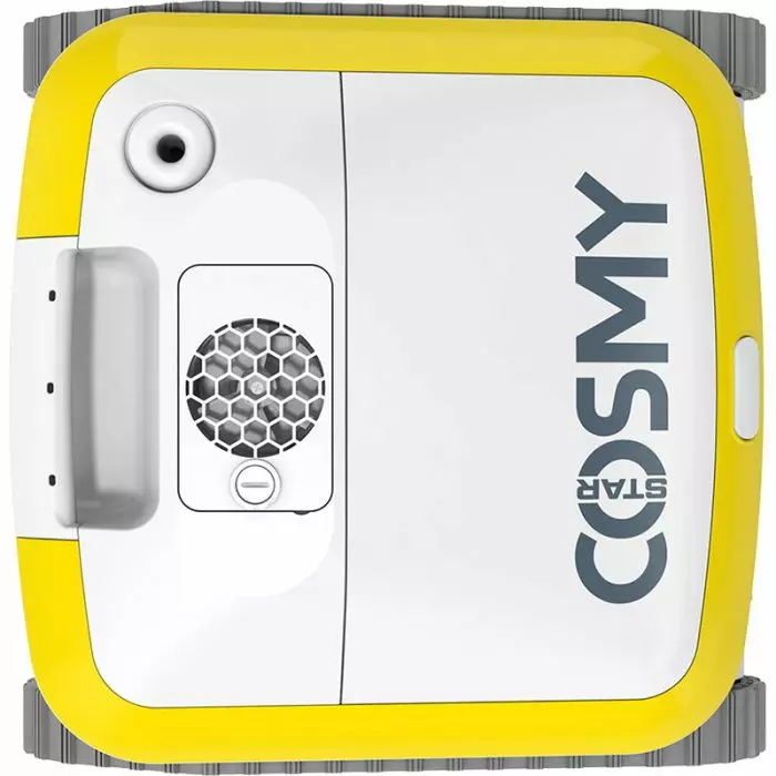La forma del robot Cosmy Star è unica nel suo genere. Sulla parte frontale è montata la spazzola in PVC, mentre sulla parte posteriore è collocata una maniglia statica e una pompa indipendente dal sistema di guida che aspira lo sporco sia con marcia in avanti che indietro.
