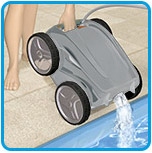 All'uscita dalla vasca un potente getto posteriore espelle l'acqua presente all'interno del robot alleggerendolo e facilitandone così l'estrazione.