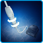 Il sistema Swivel impedisce al cavo di aggrovigliarsi e perciò consente al pulitore di raggiungere tutte le parti della piscina in modo sicuro.