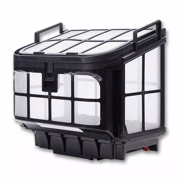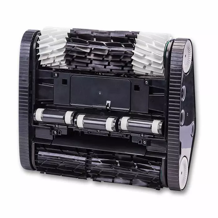 Il cestello filtrante rigido da 50 micron è grande è capiente e consente al pulitore di raccogliere foglie, insetti e detriti di sporco. Tramite il coperchio trasparente posto sulla parte superiore del robot è possibile verificare lo stato del filtro e rimuoverlo per pulirlo.