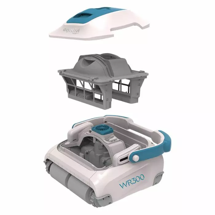 Il Robot WR300 Gyro by Aquabot rimuove le impurità da fondo, pareti e linea dell'acqua di piscine fino a 15 metri di lunghezza.