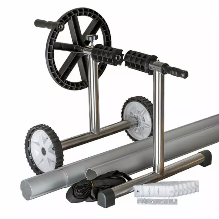 Rullo avvolgitore per piscine interrate dotato di ruote mobili. Adatto per piscine fino a 5,50 m di larghezza.