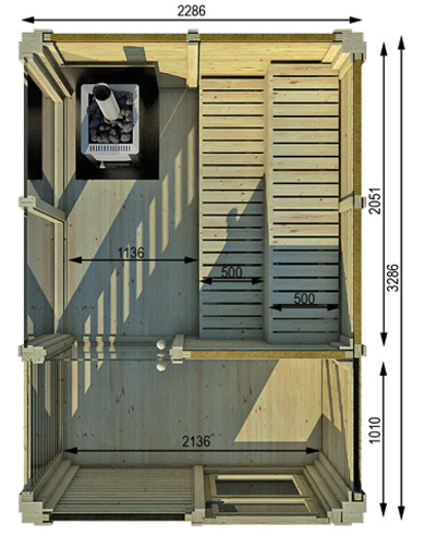 Dimensioni interne sauna: 2,05 x 2,14 m