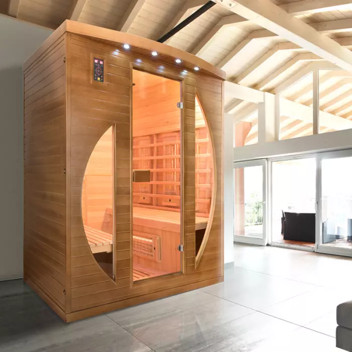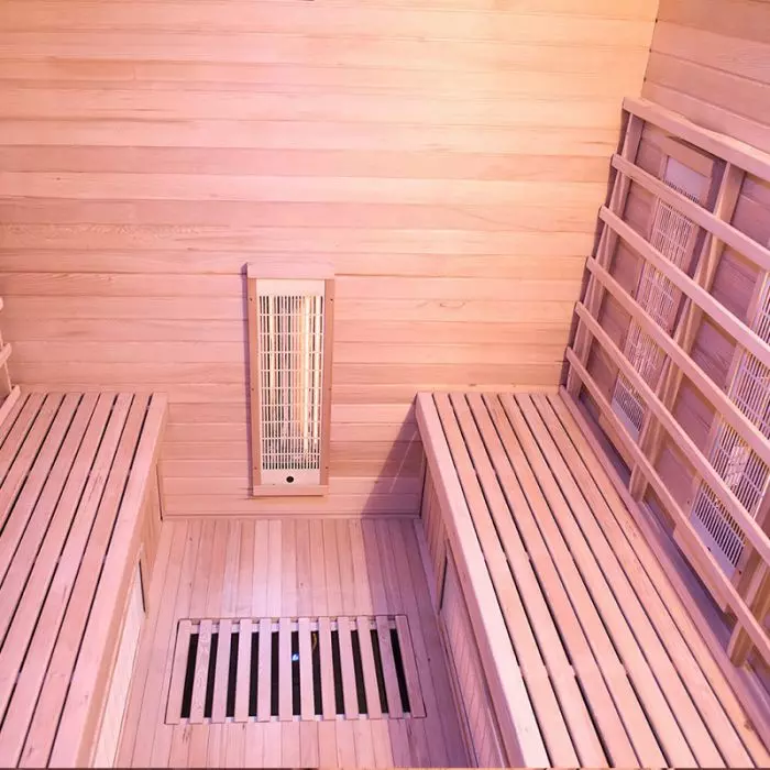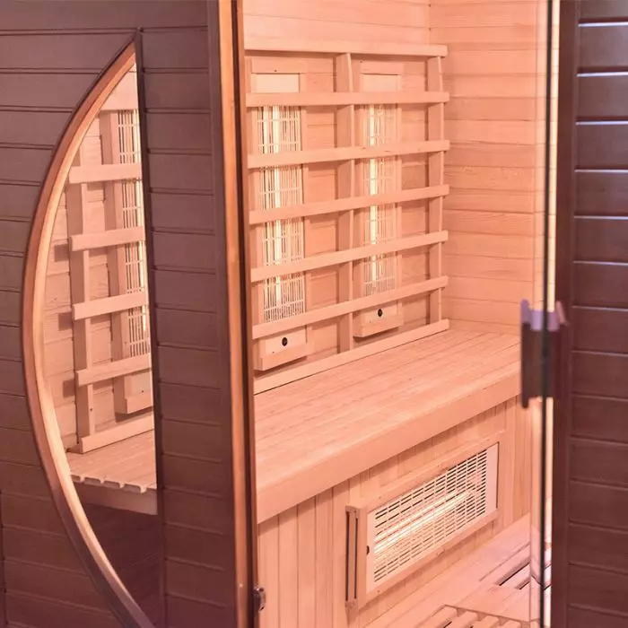 La struttura della sauna infrarossi è costituita da legno di Abete Canadese, una delle specie di legno più popolari e di maggiore valore al mondo con una naturale bellezza e morbidezza che si combinano con le sue proprietà uniche antimicotiche e antibatteriche.