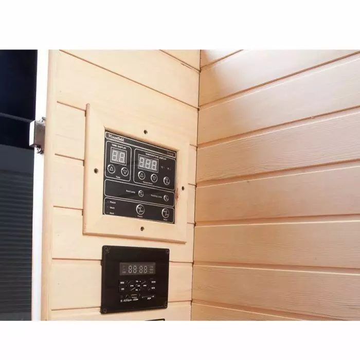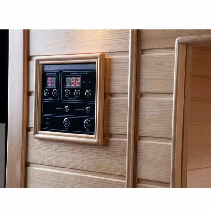 Pratico pannello di controllo da utilizzare per impostare la temperatura e il tempo di utilizzo della sauna