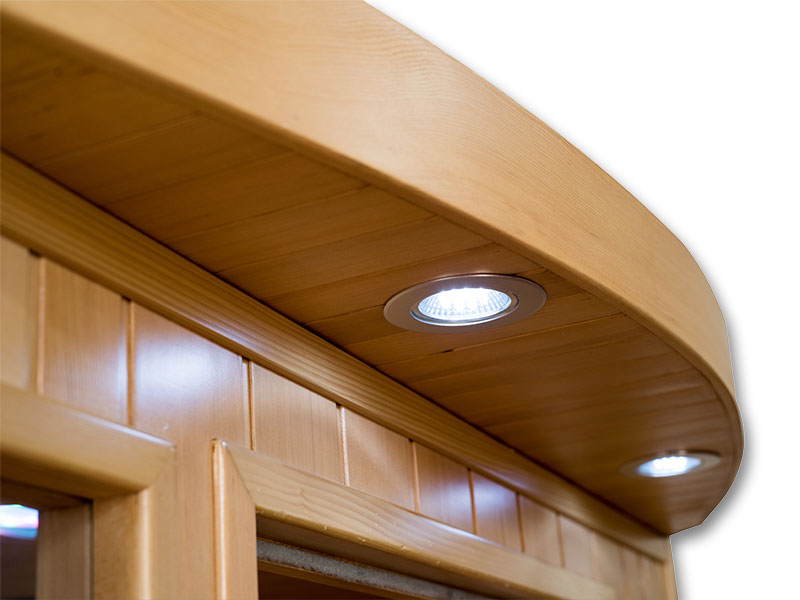 Un tipo di materiale che, oltre al pregiato valore estetico che ne privilegia abbinamento a dettagli contemporanei, risulta essere anche resistente. La soluzione ideale per la produzione di saune infrarossi che, esaltandone le proprietà isolanti, garantisce piena efficienza termica, impedendo così la dispersione di calore. SALOME è provvista inoltre di cromoterapia a 10 colori.