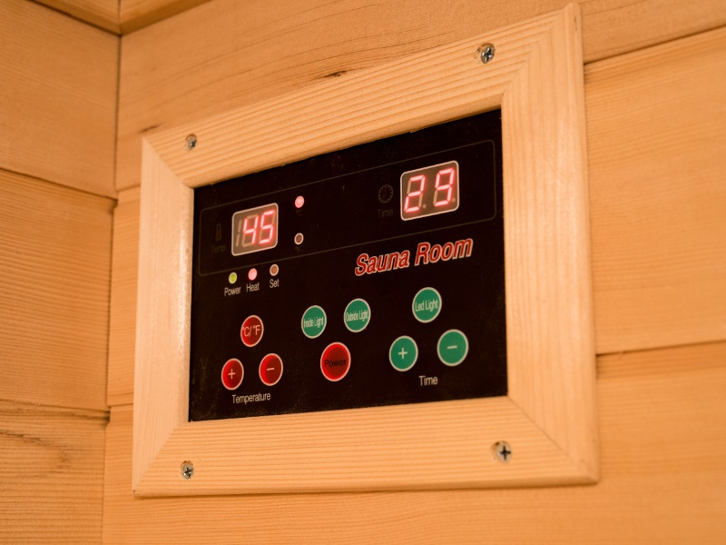 Pratico pannello di controllo da utilizzare per impostare la temperatura e il tempo di utilizzo della sauna
