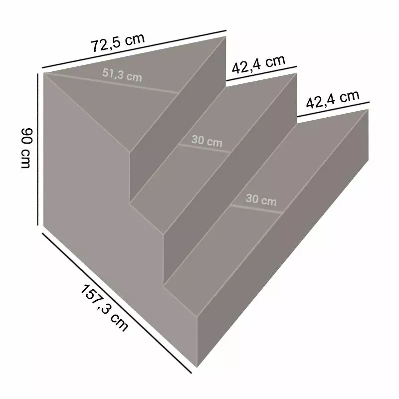 Scala interna PAVIA 1,573 x 1,573 h 0,90 m a 3 gradini, per posa sotto liner