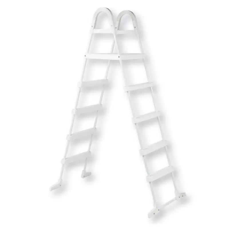 Scaletta De Luxe per piscine fuori terraScaletta DE LUXE per piscine fuori terra, con telaio con tubi zincati di alta qualità e parti in plastica resistente. Capacità di carico: 100 kg.