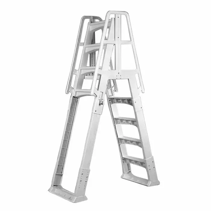 Scaletta per piscina fuori terra in resina con altezza della piattaforma regolabile da 1,22 a 1,37 m.