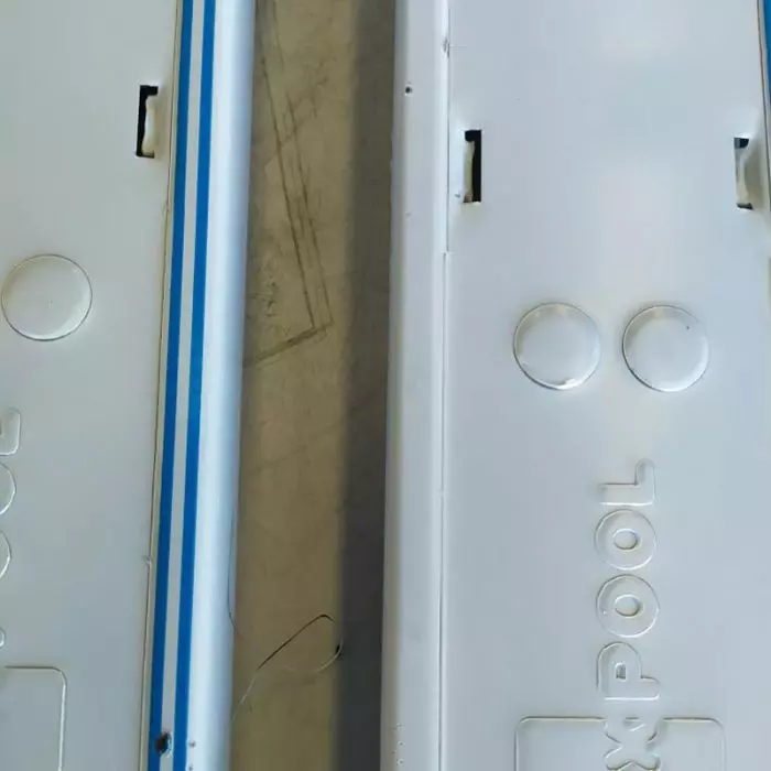 Scaletta destinata all'uso in piscine in cui la disinfezione dell'acqua viene effettuata con la tecnologia dell'elettrolisi salina, o in acque con un elevato contenuto di minerali.