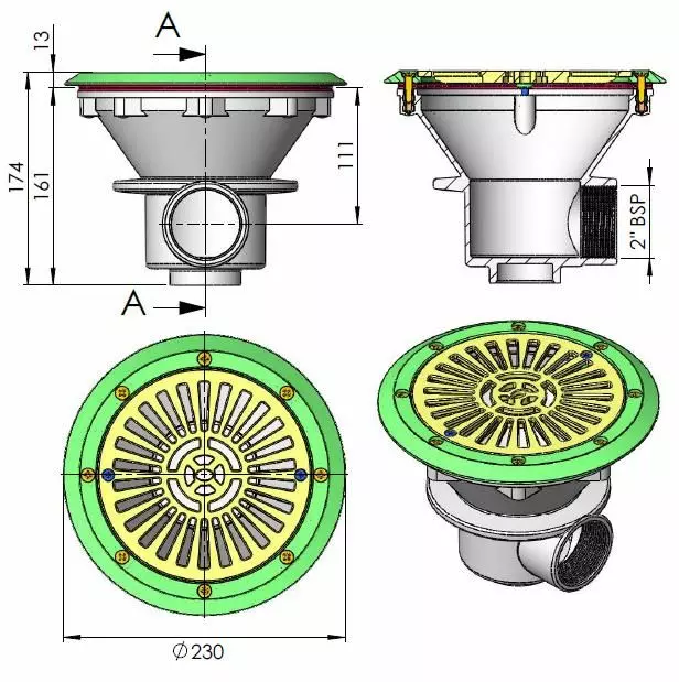 Scarico di fondo in abs 00271 dimensioni