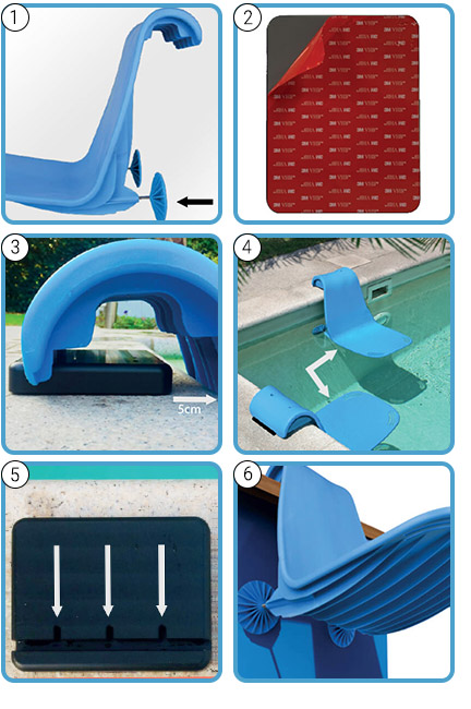 Non richiede nessuna installazione: regola la posizione delle viti in base alle proprie necessità, incastra lo schienale nell'apposito cuscinetto, incollato al bordo piscina e, infine, e appoggia i sostegni alle pareti. Il gioco è fatto.