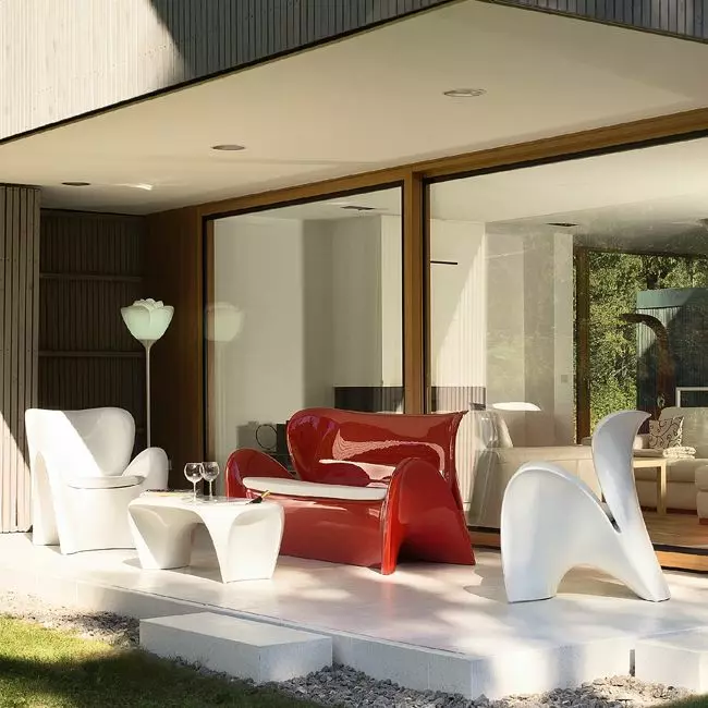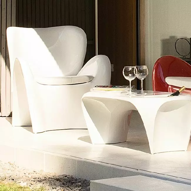 LILY è caratterizzata da una scocca a colata unica in Poleasy®, alti braccioli e due pratici fori laterali, posizionati tra seduta e schienale, fanno sì che l'acqua piovana defluisca senza fermarsi sulla seduta.