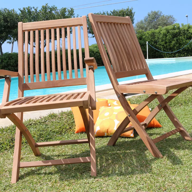 Sedia e poltrona da giardino in legno teak NAOMI, pieghevole