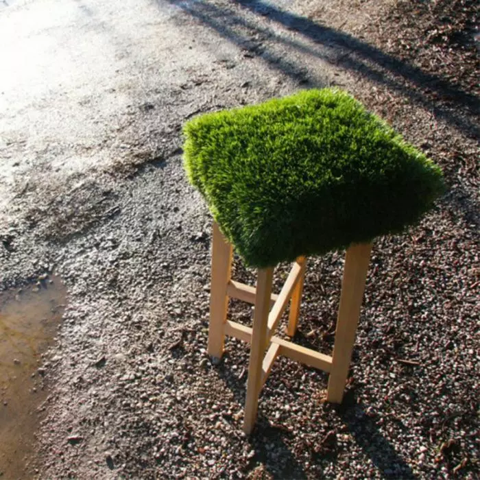Sgabello STOOL 41 x 41 cm rivestito con erba artificiale, per una comoda seduta che dona la stessa sensazione di quando si è seduti sul prato.