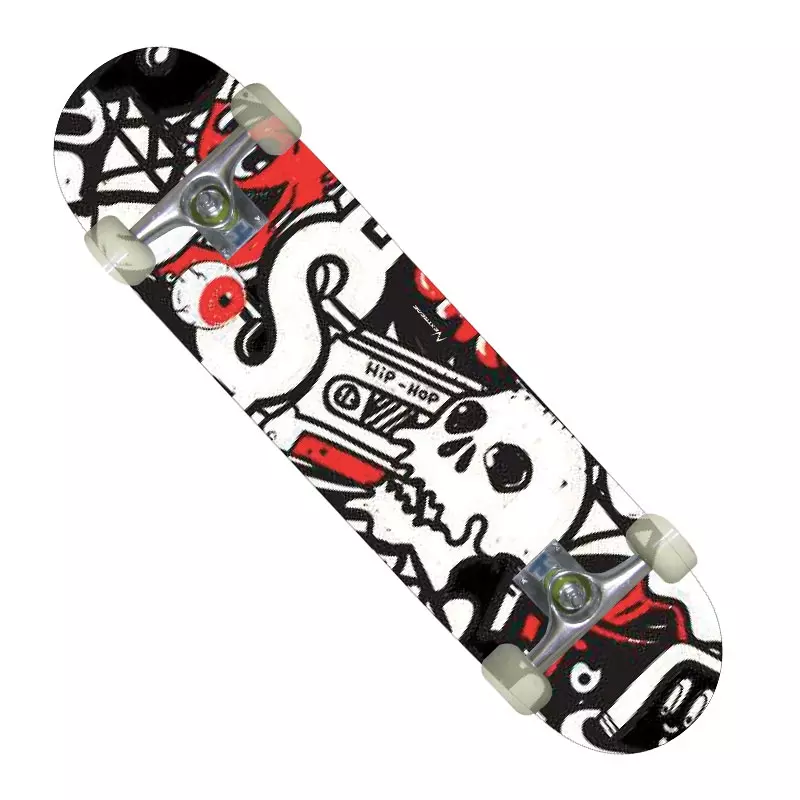 Skateboard STREET PRO con grafica HIP HOP, con stile unico, moderno ed aggressivo: la particolarità di questa serie di skateboard è che la grafica è nella parte inferiore della tavola, mentre la tavola sul lato di appoggio è tinta unita scura con antiscivolo.