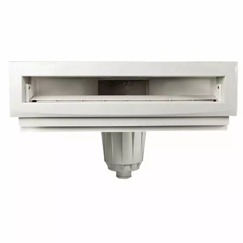 Skimmer sfioratore realizzato in ABS e caratterizzato da una bocca a parete molto larga che permette di mantenere un livello dell'acqua più alto rispetto agli altri modelli di skimmer.