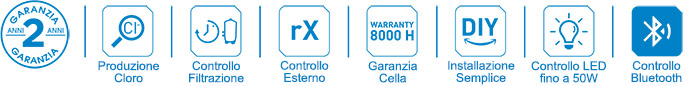 • 5 regolazioni possibili della produzione di cloro (20, 40, 60, 80, 100 %)