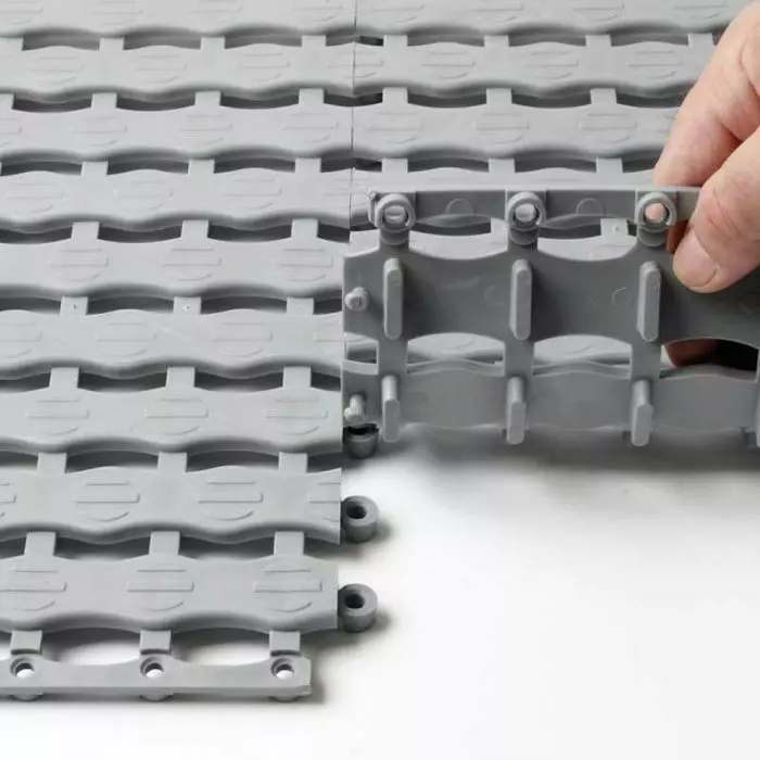 Herontile fornisce un'ottima alternativa come antiscivolo sia all'aperto che al chiuso, la superficie a griglia aperta fornisce sicurezza sotto i piedi in aree diverse tipo all'esterno di saune o come bordo piscina perché è resistente alla degradazione UV.