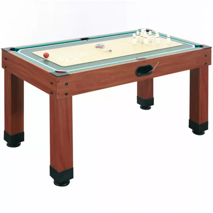 Il mobile è in robusto MDF rivestito e con semplici mosse può essere cambiato il piano di gioco a seconda del gioco che vogliamo fare: una partita a biliardo con le stecche in legno, una partita a dama, una sfida a ping pong o calcetto con il calciobalilla. Le occasioni di gioco sono anche nuove ed innovative, come lo speedhockey, o stimolanti la fantasia, come lo shuffleboard.
