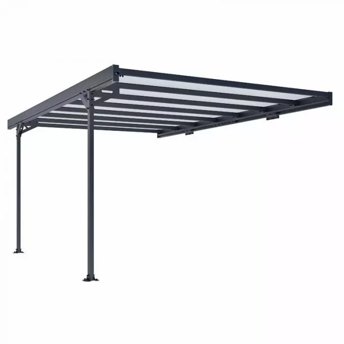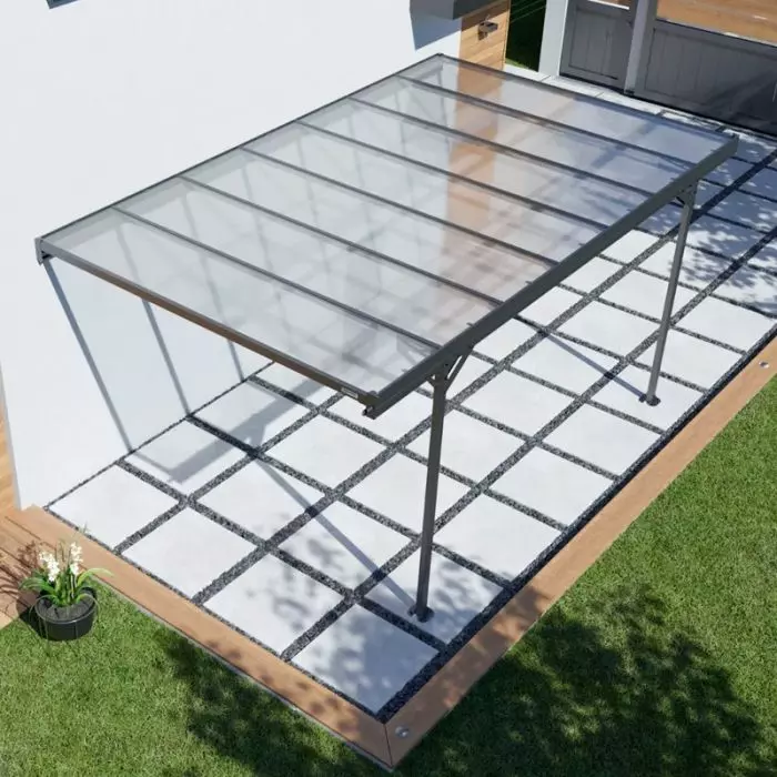 La tettoia è progettata per essere ancorata a un muro già esistente. Il design è semplice ed elegante, capace di integrarsi con qualsiasi ambiente e stile.