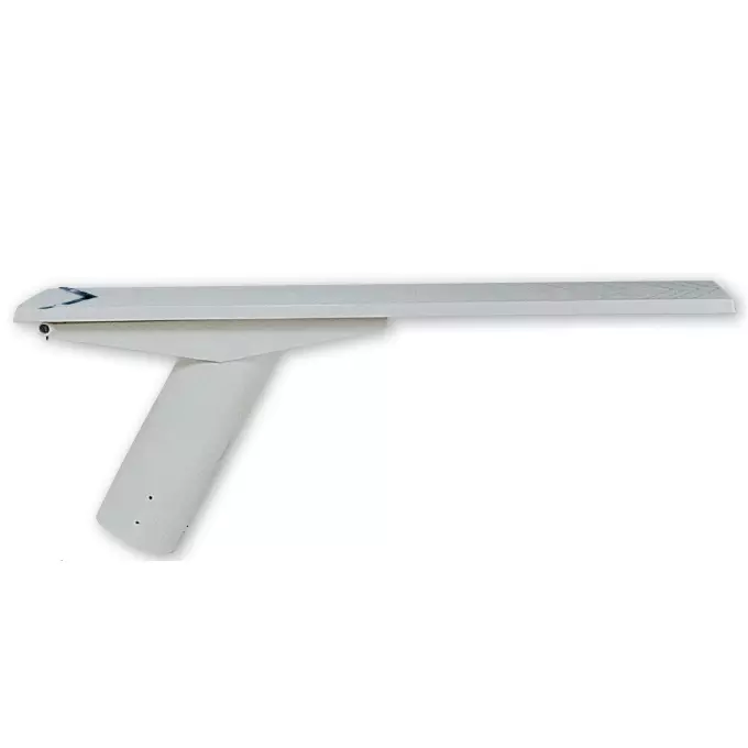 Altezza dall’acqua mm 600/750 circa, supporto in acciaio zincato a caldo e verniciato bianco, fulcro regolabile, kit di fissaggio, tavola in vetroresina da 2,40 metri.