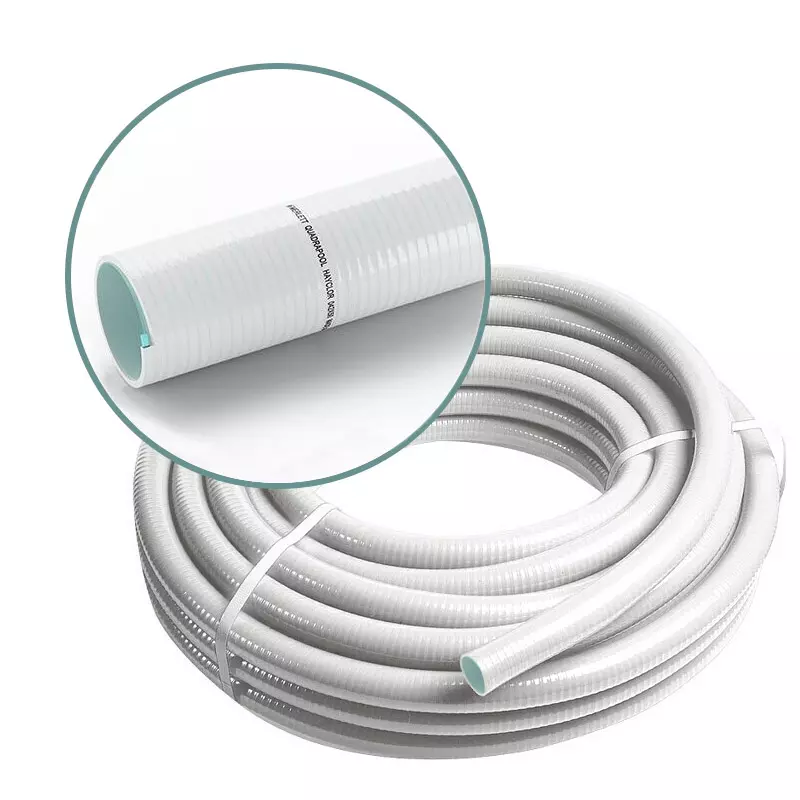 Tubo semirigido in PVC con rinforzo spiralato interno per garantire un'elevata resistenza alla compressione.
