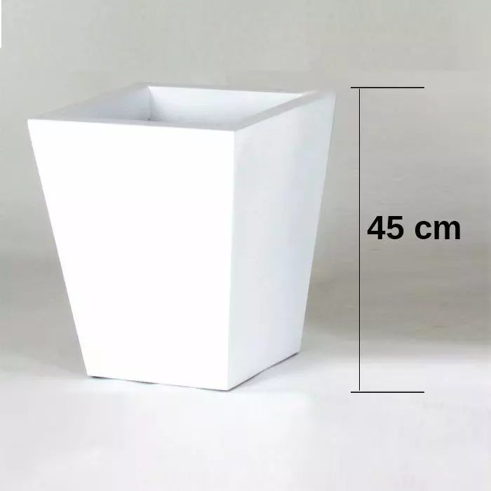 In vetroresina resistente agli agenti atmosferici con sistema per far incastrare il vaso con la pianta in modo semplice e veloce.