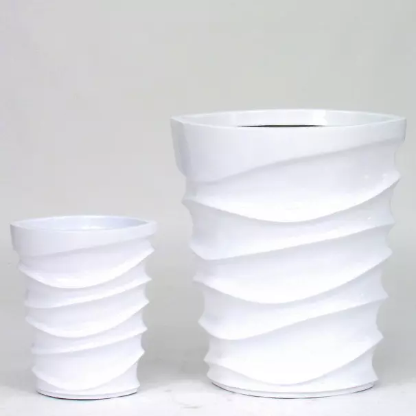 Vaso WAVE di colore bianco lucido in due diverse altezze per ogni esigenza.